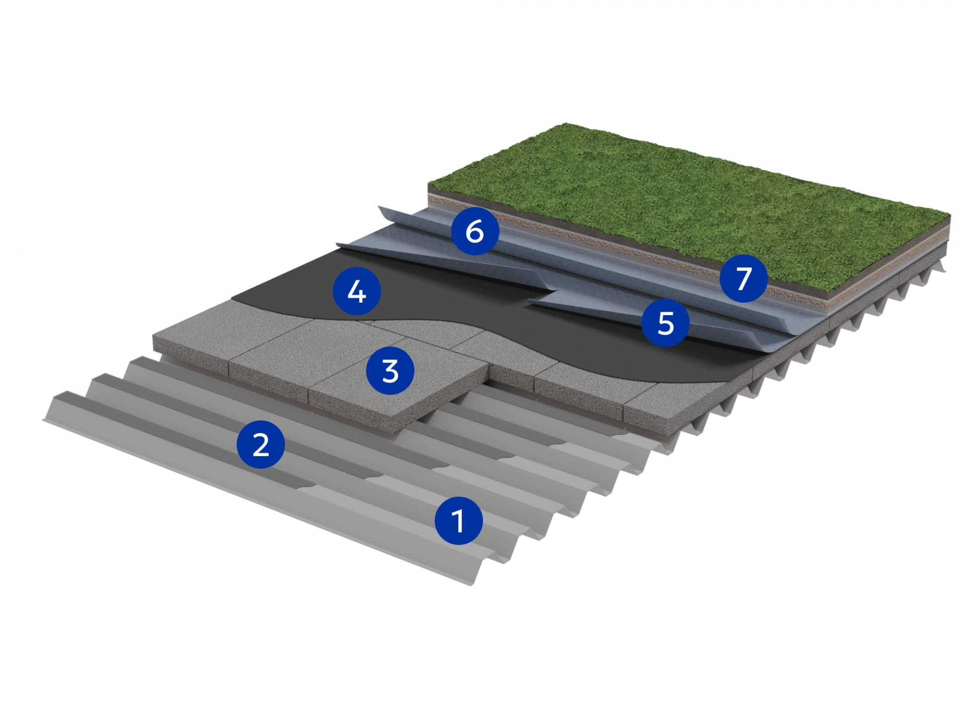 - Защитный слой, влагонакопительный слой дренаж, системный фильтр, субстрат